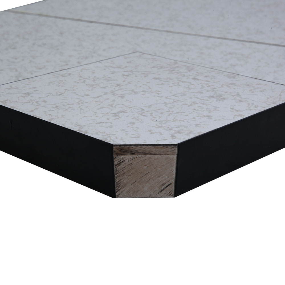硫酸鈣防靜電地板采用硫酸鈣為基材,地板上面用防火板HPL/PVC/陶瓷地板等裝飾面層,下面用鍍鋅板或壓花鋁合金粘合,四周用PVC導靜電封邊,地板不易受潮,不易變形,耐燃燒時間更長,使用壽命長,安裝好的地板下面形成通路,方便下面地板走線,線路檢修。地板無需除油磷化噴塑,平整度好、邊不反翹,環(huán)保、強度大,密封性及穩(wěn)定性好。